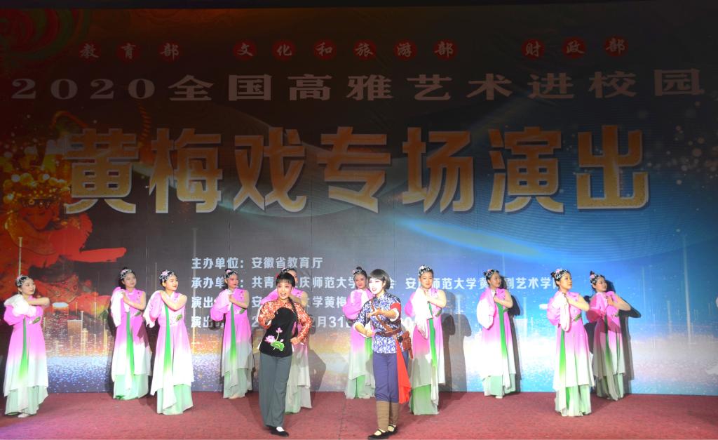 “鲜花开放满天庭,万紫千红别有春……”伴随着阵阵铿锵的鼓点,12月31日晚,由安徽省教育厅主办,beat365官网团委、黄梅剧艺术学院承办的2020全国“高雅艺术进校园”黄梅戏专场演出活动在龙山校区图书馆东报告厅举行,近500名师生观看了演出。