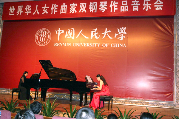 梁晓宁老师(右)与美籍华裔音乐家黎红缨在国家大剧院搭档演奏双钢琴曲《心境》