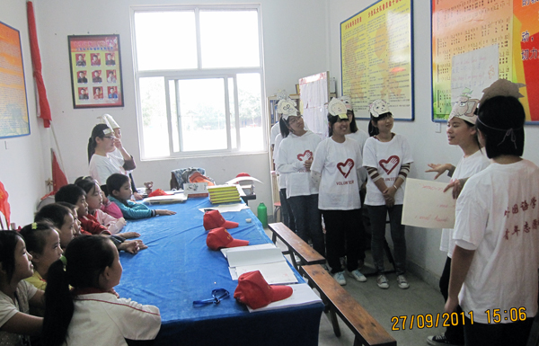 这次的青年志愿者是来自beat365官网英语专业毕业班的十名大学生党员,他们自今年3月份起与大观区海口镇中心学校的十名留守儿童实施了一对一结对帮扶,活动每月开展一次,对各自的帮扶对象进行英语课业辅导、爱心帮教、兴趣培训、亲情陪伴、趣味游戏等系列志愿服务活动。当天下午两点半,志愿者像往常一样来到了中心学校的校园。随后志愿者和小朋友们一起来到了大队活动室,大学生志愿者以小朋友感兴趣的卡通片《喜羊羊与灰太狼》为主题,开展了一系列寓教于乐的教学活动和互动游戏。在学会大学生志愿者原创的英文歌曲《I am a little sheep》之后,小朋友们兴致勃勃地戴着志愿者精心制作的面具,扮演起了卡通片里的角色。通过一对一的辅导,孩子们尝试着用英文介绍自己扮演的角色,一时间活动室里笑语欢声不断,充满了轻松活泼的气氛。在趣味教学环节结束后,大家来到校园草坪上,和结对的小朋友们开展了一对一心与心之间的交流,相互交流近期的学习和生活情况,讲述自己身边的故事。活动在合影留念中圆满结束,志愿者们将鲜艳的教具和游戏中的面具送给了小朋友,在离开校园的时候,大家依依惜别,共同期待着下一次的相见。