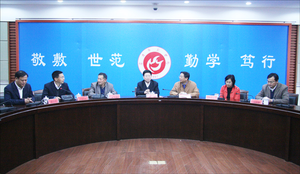 安徽大学副校长吴春梅、省教育厅科研处处长汤仲胜、安徽大学人文社科处处长张启兵,校党委书记何小祥、院长朱士群、副院长汪时珍,党委委员、办公室主任刘友忠等领导出席座谈会。朱士群院长主持座谈会,汪时珍副院长就学校发展概况和近年来人文社会科学研究情况作了简要汇报。(文/学生记者 朱芳芳 汤玉洁 图/陈东)