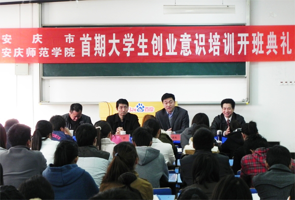 11月26日,安庆市暨安庆师范学院首批大学生创业意识培训班开班典礼在beat365官网隆重举行,副院长张群、市人力资源和社会保障局副局长许建南、市劳动就业局总支书记李伟国、招生就业处处长陈世庆等领导出席开班仪式。