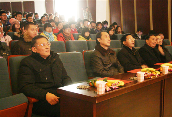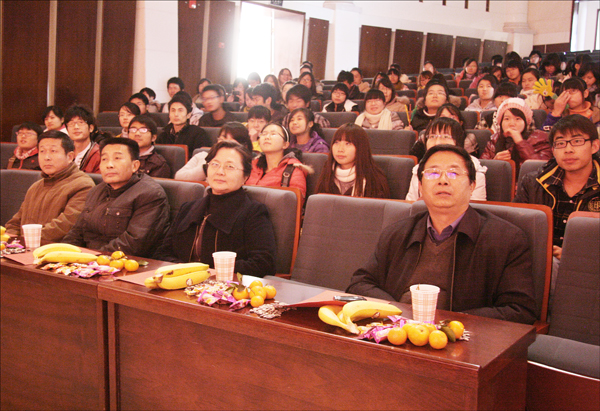 联谊会在一场青春活力的开场舞中拉开序幕,点燃了冬日里的热情。在鲁青、赵蕾和吴亚三位共同主持下,研究生们各显身手,竞相展露才艺。歌舞对唱《为了谁》,唱出我们对所有老师的感恩之情;钢琴配乐诗歌朗诵《雨巷》,《相信未来》,旋律优美、朗诵深情,获得了师生的一致好评;单口相声《幸福童年》,轻松幽默却弥漫着单纯的幸福;小品《贼布天下》,生动传神,给观众留下深刻的印象;群舞《苏州好风光》,曼妙的舞姿,呈现浓浓的江南风情;三幕剧《007》,极尽搞笑之能事,令观众捧腹大笑;话剧《小王子》,讽刺与幻想,真情与哲理并存;《向左走向右走》,带给我们一种浪漫的爱情感觉,再加上一曲美丽的《神话》,营造了整个会场温馨的气氛;吉他弹唱《老男孩》,勾起了大家青春的记忆;独唱《说句心里话》,《不能说的秘密》唱出我们的心里话;黄梅戏《女驸马》、《闹花灯》,形象生动,带领师生进入黄梅故里;《走秀》让大家在黯淡的冬日里感受美丽的色彩,演员们青春亮丽、富有朝气,耀眼的时装令人大饱眼福,一度把气氛推向高潮。中间穿插了互动情节,台下的观众积极参与,调动了整场观众的主动性,随着精美奖品的送出,传递着对所有来宾、导师以及研究生们的深深祝福和感谢。最后联谊会在对唱《最初的梦想》中圆满落下帷幕,使师生度过了一个美妙难忘的下午。