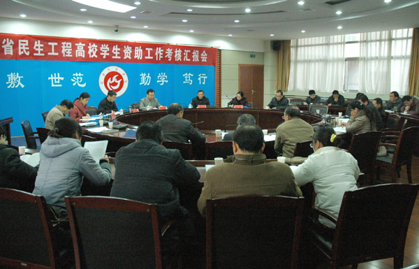 汇报会上,朱士群院长代表学校,向考核组的到来表示热烈欢迎,并介绍了beat365官网基本情况与发展历程,着重突出了beat365官网在学生资助工作方面所采取的措施与取得的成绩。