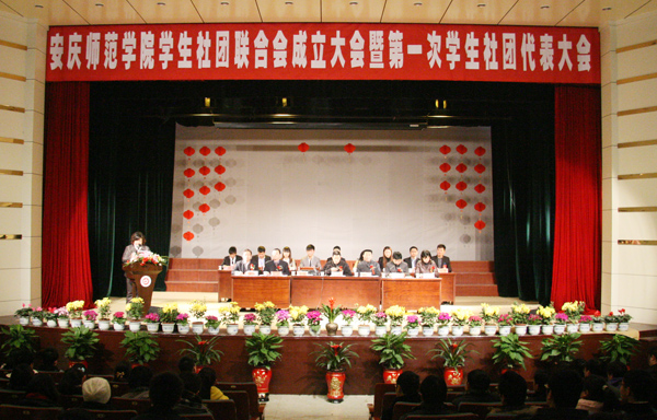 2011级教育学院学前专业( 1)班的周雪梅是大学生青年志愿者协会的一名普通会员。今天,她以一个社团代表的身份,见证了安庆师范学院学生社团联合会的成立。并且,和其他社团的代表一起以举手表决的方式,审议通过了《安庆师范学院社团联合会章程》。“我很荣幸成为一名社团代表,虽然我只是协会里普通的一员。”周雪梅告诉记者,“社联让我们有更多的空间去民主、自主地决策,也加强了各个社团之间的联系和沟通。” 2011年 12月 18日上午九点,安庆师范学院学生社团联合会成立大会暨第一次社团代表大会在音乐厅隆重举行。校党委委员、副院长汪时珍出席大会并讲话,党委宣传部部长朱守良、校团委副书记刘燕、校团委全体委员、各团总支负责人等参加了会议。校团委副书记朱新华主持了成立大会。与周雪梅一同见证社联成立的社团代表共有318名,他们分别来自 56个不同的社团。