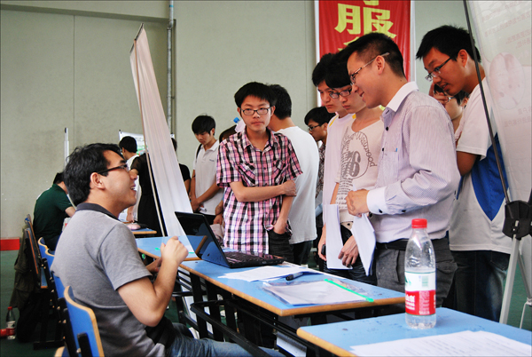 “毕业生必须适应新的形势,更要适应新的环境。初入职场难免有点不适应,包括招聘环境、面试压力、人际交往,以及一些不公平现象。周围的人曾多次对我说,要用自己的方式尽快适应环境,其次是改变环境。一个人,如果真的适应了身边的环境甚至更大的范围,就是适应了社会的发展趋势,那么他一定能够成功。用积极的心态面对世界,多关注事物积极的一面是很重要的。”计算机与信息学院一名前来应聘的吴同学刚刚结束在南京的实习,回到母校正好赶上了招聘会,现场向学弟学妹们传授自己的经验。