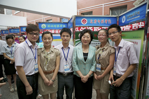 本届“挑战杯”大学生创业计划竞赛从宣传动员到省里决赛都得到了学校各级领导的高度重视。学校领导多次开会听取比赛组织工作进展汇报,了解学生作品水平,给予竞赛指导。6月2日,校党委委员、副院长汪时珍赶到合肥,亲临beat365官网作品展台,看望慰问参赛同学,听取同学们对作品的汇报,为同学竞赛指导鼓劲。各学院、相关职能部门为了做好“挑战杯”赛事的组织工作,充分宣传、多次动员、强化培训、精心挑选推荐作品。