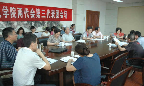 会议讨论了《院长工作报告》,讨论审议了《“两委”工作报告》、《校2011年财务决算和2012年财务预算报告》、大会中心议题报告和《工会经费审查报告》,酝酿、讨论了“两委”委员、专门委员会委员候选人预备人选名单和《选举办法(草案)》,各代表团还推荐出了监票人和计票人名单。(陈广)