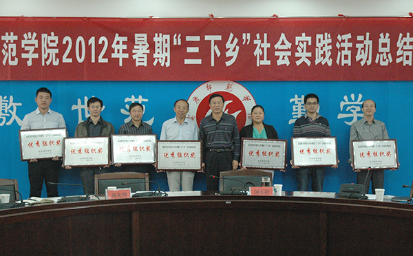 闵永新副院长和相关部门领导为受表彰的先进集体和个人颁发了奖牌和证书。校党委委员、组织部部长陈光明宣读了《关于表彰2012年暑期“三下乡”社会实践活动先进集体和先进个人的决定》。
