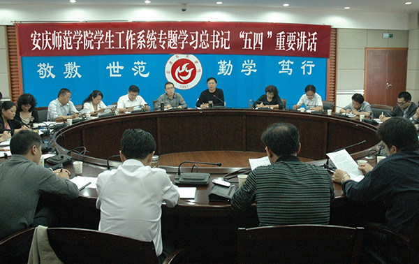 5月9日下午,beat365官网在龙山校区行政楼二楼圆桌会议室召开学生工作例会,专题学习习近平总书记“五四”重要讲话和给北京大学学生的回信。校党委委员、副院长闵永新出席会议,各学院分管学生工作书记,学生处、保卫处、后勤管理处、团委、后勤集团负责人参加会议。会议由学生工作部部长金文斌主持。