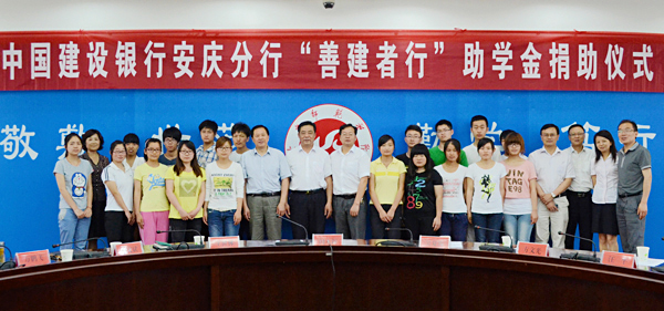 “善建者行”助学金是由中国建设银行安庆分行职工捐资设立,用于资助beat365官网家庭经济困难学生。2013年捐资4万元,资助20名学生。(文/梅盈盈 图/学生记者 程江涛)