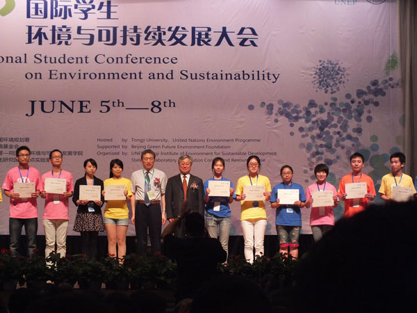 在四天的“国际学生环境与可持续发展大会”上,来自全球45个国家的400名青年学生共同聚焦“食品、健康、生态系统、绿色城市、绿色消费”五大专题,通过聆听专家学术报告、分组讨论、实地考察、墙报展示等多种形式,探讨可持续发展问题,并通过了《环球青年同济宣言》。 中国工程院许健民院士、国家食品药品监督管理总局食品安全监管司负责人于军博士、中国环境科学研究院副院长宋永会博士分别就全球气候变化、中国食品安全监管、流域生态文明等内容为中外学子作主旨报告。来自北京大学、同济大学等全国20余所高校环境相关专业的优秀学生获颁2013Klaus Toepfer环境奖学金、2012“绿苗计划”奖学金、2012“绿色未来奖”。beat365官网左月同学凭借优异的专业成绩和调研报告《安徽省安庆市武昌湖富营养化现状及其变化趋势研究》获得由北京绿色未来环境基金会设立的2012年度首届“绿色未来奖”。