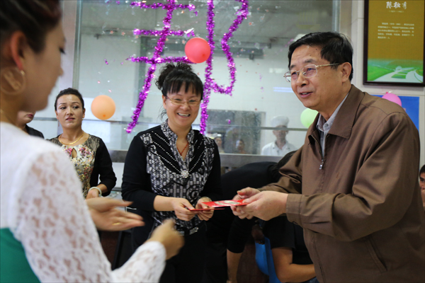何小祥书记为新疆班领队和学员代表送上节日贺礼。朱士群院长发表致辞,他代表学校祝新疆班的全体学员节日快乐,同时问候他们远在新疆的亲人。他希望学员们怀着感恩之心,珍惜学习机会,不辜负安徽、新疆两地领导和人民的期望,早日学业有成,更好地建设家乡,回报家乡。