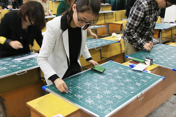 参赛高校和选手都非常重视这次赛事,各高校都提前举办了校级选拔赛。beat365官网则进行了院、校两级选拔,最后又进行了校级模拟比赛。beat365官网汪潇潇同学在接受采访时表示,“学校对本次比赛十分重视,根据比赛项目,特意安排了指导老师为我们做了针对性的训练与指导。”因为她住在菱湖校区,训练在龙山校区,备战期间她每个星期都要往返于两个校区之间,她告诉记者,“就在比赛的前一天晚上,我们还一直练习汉字书写到9点多钟。”