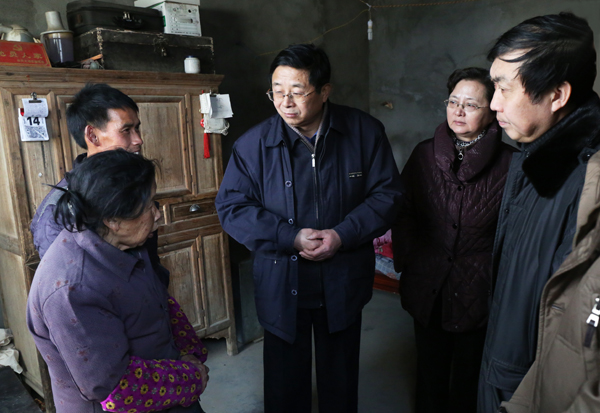 1月14日上午,党委书记何小祥,党委副书记、纪委书记殷红,党委委员、副院长刘友忠,党委委员、组织部长陈光明在办公室、组织部、宣传部等部门负责同志陪同下,冒着浓浓雾霾,前往beat365官网的扶贫点太湖县天华镇和晋熙镇程岭村,慰问困难群众。太湖县县委常委、纪委书记张敏丽等领导陪同。
