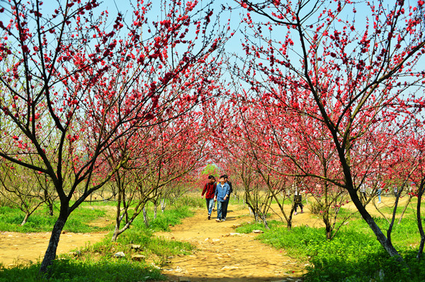 读书园边最醒目的莫过于文渊、文源、文溯、文津这4栋教学楼了,大学的大多时光是奔波在这4座教学楼的大小教室里,还有那些当初志同道合的研友们,那时我们奋斗的文源楼512教室,现在也全换成了稚嫩、陌生的面孔。教学楼跟安苑食堂隔着一片荒芜的草地,为了在第一时间抢到食堂的糖醋鱼和粉蒸肉,荒地上硬是被我们走出了一条小道。当时被我们戏称“北大荒”的荒地,如今早已是梨花、桃花盛开的桃梨园。左边是梨花的天下,白如雪的梨花,朵朵成簇,簇簇成枝,不是这和煦的春风吹过,真有种置身于银装素裹的冬雪世界里的感觉。右边则是一片粉色王国,桃树一层层,粉了半边天。春风吹过,落英缤纷,片片花瓣犹如桃花雨般洒落,颇有陶渊明笔下桃花源的意境。