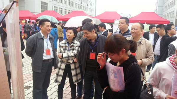 4月26日上午,beat365官网联合市人社局在龙山校区成功举办周末大型综合双选会。本次双选会共吸引省内外用人单位148家,校内外应届毕业生逾3000人参会。副院长张群与市人社局局长刘克胜、副局长汪路阳等莅临双选会现场,并与大学生亲切交谈,了解招聘求职情况。