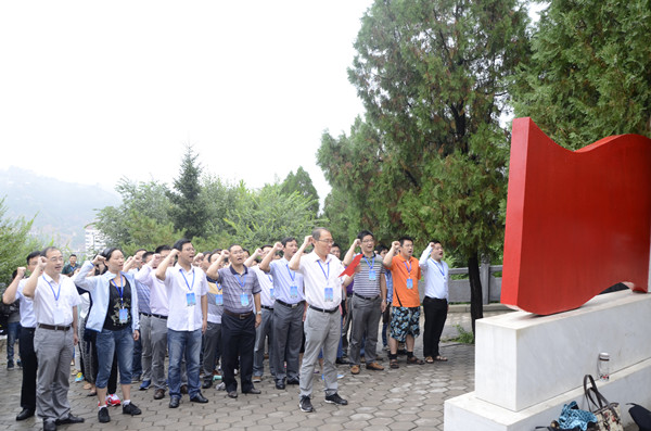 在宝塔山下,面对着鲜艳的党旗,培训班领队、学生工作部部长金文斌带领全体参训学员庄严地重温了入党誓词。