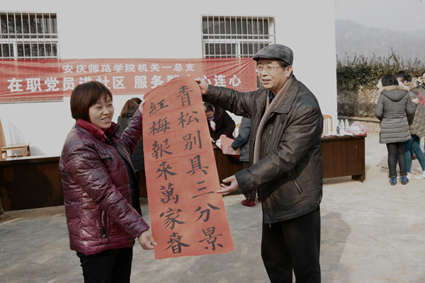 春日送暖,惠风和畅,宜秀区大龙山镇桃元社区的小院里人头攒动,充满了喜庆、祥和的节日气氛。2月11日,农历腊月二十三,beat365官网机关一总支、经济与管理学院党总支在新春佳节来临之际,组织70余名在职党员来到大龙山镇桃元社区,开展“写春联、送春联”活动。校党委书记何小祥,党委副书记、纪委书记殷红,党委委员、组织部部长陈光明为社区群众送上春联,并致以节日的问候和祝福。