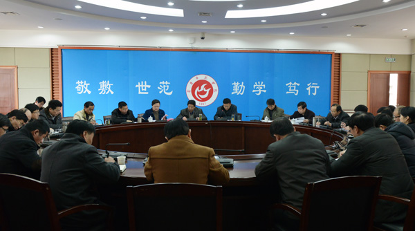 院长闵永新对假期工作进行了回顾和总结,对开学初及本学期重点工作进行了安排部署。他指出,2015年,学校总体工作思路是:全面贯彻党的十八大和十八届三中、四中全会精神,深入学习贯彻习近平总书记系列重要讲话精神,巩固和拓展党的群众路线教育实践活动成果,以内涵建设为核心,以改革创新为动力,全面实施法治校园、文明校园、美丽校园建设,强力推进人才队伍、教学内涵、科研能力、学科群和创新平台建设,做实做亮办学特色,美化亮化校园环境,为建设应用性突出、特色鲜明的高水平师范大学而努力奋斗。他强调,开学初和本学期要重点抓好四项工作,一要全力推进重点工作,二要深入开展内涵建设,三要着力提升治理水平,四要切实加强党建和思想政治工作。他要求全校上下要进一步解放思想,强化责任,转变作风,狠抓落实,以更加坚定的信心、更加昂扬的姿态、更加顽强的斗志、更加有力的举措,振奋精神,鼓足干劲,迎难而上,苦干实干,为建设应用性突出、特色鲜明的高水平师范大学而努力奋斗。