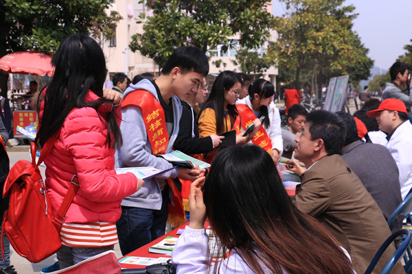 随着活动的深入举行,现场的气氛也逐渐热烈起来。许多同学前来咨询、领取宣传手册。除了专业的从医人员,活动现场还有数十名来自青协、绿源等公益性社团以及社联的大学生志愿者。志愿者们肩披绶带、手拿结核病宣传手册,给同学们讲解结核病的相关知识和预防方法,并组织同学们在防结核标语上签名。13级应用心理学的叶羽同学也是这次活动的志愿者之一,她说:“我有家人就患有结核病,我知道这个病的感染几率是很大的,正因为如此,我们掌握这方面的健康知识尤为重要,我觉得这个活动非常有意义,也是很有必要的。”而青协的负责人甘俊齐同学也表示,这样的安全知识教育活动青协以后还会继续参与。