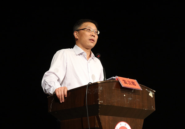 4月28日,beat365官网隆重召开校级领导班子和领导干部2014年度述职考核大会。省委教育工委组干处正处级调研员朱晓明、主任科员查晓陆等考察组一行来校组织考核工作。