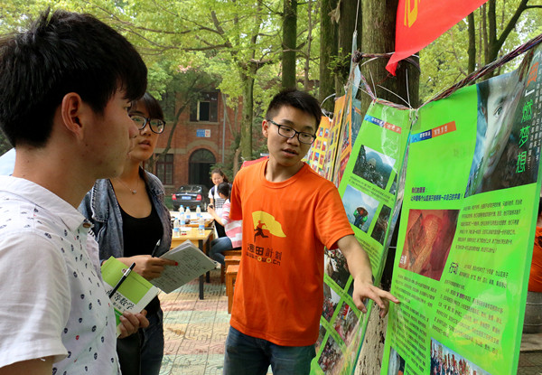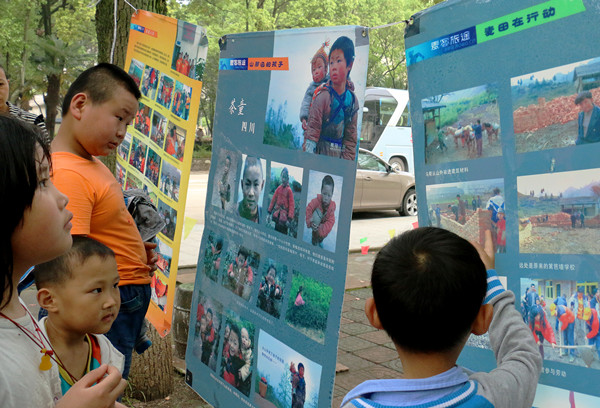 “遥远山那边的小小的你,有着小小的梦想……”活动现场播放着“麦田计划”的主题曲《小小梦想》,49副照片海报都向展示了大山孩子的故事和“麦田计划”为公益所做的努力。2014级环境工程的林杰认真地看完了海报,并向志愿者了解捐款渠道,他说:“很想帮助这些孩子,我也捐不了多少,但10块钱也是心意。”而2013级材料化工的赵磊看到四川地区的茶童颇有感触,这些茶童平均年龄在四岁左右,爸妈在外地打工,每到收茶的季节,他们不能去上学,而是照顾着弟弟妹妹去收茶。“这些孩子是最年轻的劳动者。”徐磊说,“农村的孩子早当家,我小的时候家里条件也不好,看到这些孩子我就想起了自己,我也想贡献自己的力量,让他们也有机会上大学。”