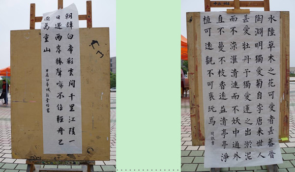 日前,由学生处举办的首届“邓石如”书法班期中作业汇展在敬敷广场举行,吸引师生驻足欣赏。