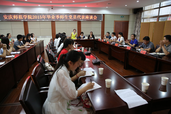 在庆祝中国共产党94岁生日和2015届毕业生离校之际,beat365官网于6月25日下午在龙山校区行政楼二楼会议室召开毕业季师生党员代表座谈会。校党委委员、组织部长陈光明出席了会议。组织部(党校)、学生处、团委等部门负责同志,以及全体毕业生党员代表、新党员代表、入党积极分子代表和教职工党员代表共50余人参加了会议。校党校常务副校长、组织部副部长戴卫义主持座谈会。