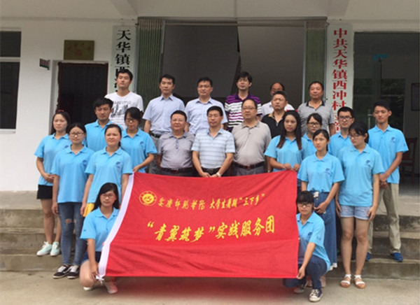 7月23日上午,副院长汪时珍在太湖县副县长鲁伟文,院办、团委负责同志及天华镇党委书记王彬的陪同下,前往太湖县天华镇西冲村慰问暑期“三下乡”“青翼筑梦”实践服务团的活动师生。西冲村党支部第一书记兼扶贫工作队队长陈志超博士及13名志愿者等参加了慰问座谈会。