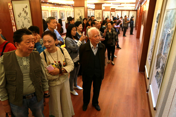 开幕式结束后,不大的展厅内挤满了人,甚至有拄着拐杖的老先生带着自己的孙女来观看画展。市民宋先生是一位书画爱好者,他说:“我几天前就听说这里要举办画展,今天慕名而来,没有让我失望。”路过的大一新生苪静文也被书画展的火热场面吸引了过来,她走进展厅细细地观看了每幅画作,苪静文称,相对于西方的各种画派,她更喜欢中国画。