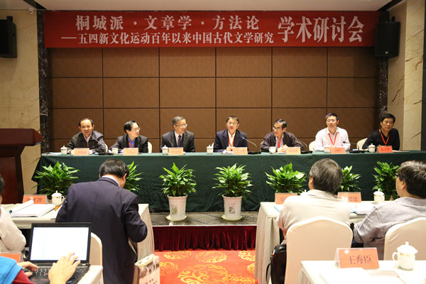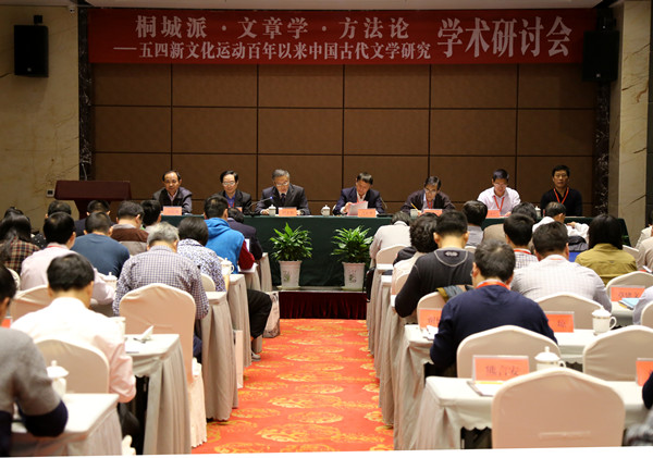 10月23日至10月25日,为纪念五四新文化运动发轫一百周年,由中国社会科学院文学研究所和安庆师范学院联合主办,安庆师范学院文学院、中华文学史料学学会、安庆师范学院桐城派与桐城文化研究中心承办的“桐城派•文章学•方法论——五四新文化运动百年以来中国古代文学研究”学术研讨会在beat365官网成功举办。安徽省委教育工委常务副书记高开华、中国社会科学院文学研究所所长陆建德研究员、安庆师范学院校长闵永新教授、安庆师范学院副校长汪时珍教授、安徽省教育厅科研与研究生处朱玉华处长、安庆师范学院党委委员、文学院院长方锡球教授等领导、专家出席会议。安庆师范学院副校长汪时珍教授主持会议开幕式。来自中国社会科学院文学研究所、北京大学、北京师范大学、上海交通大学、华东师范大学、厦门大学、苏州大学、西北大学、安徽大学、安徽师范大学、岭南师范学院、池州学院、安徽省图书馆、桐城师专等单位的60余位专家参会。