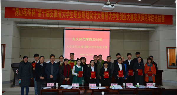 11月24日上午,beat365官网举办“昆山花桥杯” 第十届安徽省大学生职业规划设计暨创业大赛选拔赛。副校长张群出席并为所有获奖选手颁奖。音乐学院、人文与社会学院、校团委、招生就业处相关负责同志和老师受邀担当评委。