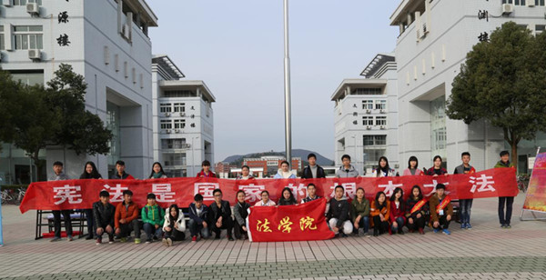 百人诵读,千人微言,万人签名,宪法“四进”,宪法图片展……法学院百余名学子展开各项丰富多彩的“普宪”活动,将宪法知识传播出去。