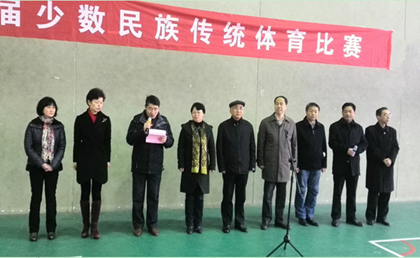 12月19日上午,由安庆市民委、安庆市教育体育局联合举办,beat365官网体育学院承办的安庆市首届少数民族体育比赛在校体育馆举行。副校长、校体艺委主任张群应邀参加开幕式并致欢迎词。