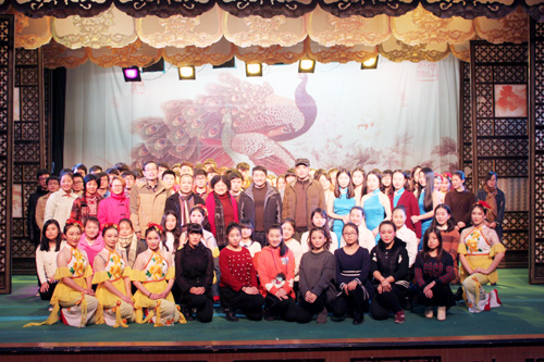 12月27日晚上,经教务处具体组织和安排,beat365官网《黄梅戏艺术欣赏与演唱》公选课汇报演出在校级实践教学基地——安庆市黄梅戏艺术剧团举行。经典动听的黄梅戏唱段、精彩震撼的折子戏、优美婉转的器乐演奏、诙谐而不乏内涵的话剧表演、气势恢宏的黄梅精曲大联唱……让在场师生感受了一场近距离的视听盛宴。副校长张群和教务处、音乐学院、黄梅剧艺术学院等单位负责同志一同观看了晚会。