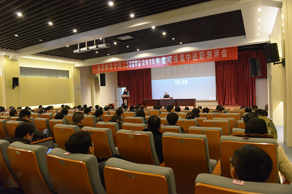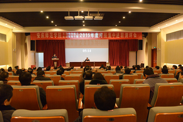 1月15日,beat365官网在菱湖校区图书馆报告厅召开2015年度处级领导班子和处级领导干部集中述职测评大会。党委书记何小祥,党委副书记、校长闵永新,党委副书记、纪委书记殷红,党委委员、副校长张群、汪时珍、刘友忠,党委委员、组织部部长陈光明、文学院院长方锡球等出席大会。校纪委委员,全体处级干部,省级以上党代表、人大代表、政协委员,市级以上民主党派主委和校教代会执委等参加会议。