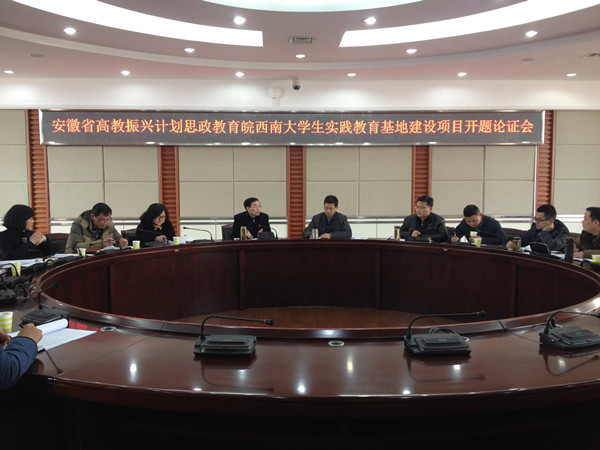 2月24日下午,由副校长汪时珍牵头申报的安徽省高等教育振兴计划思想政治教育综合改革计划立项课题《皖西南大学生实践教育基地建设项目》开题论证会顺利举行。宣传部、教务处、学生处、团委、政治学院、音乐学院等单位负责人和课题组骨干成员参加了会议并座谈。