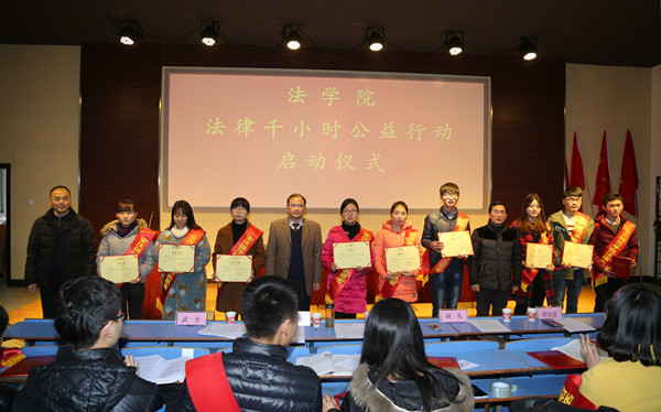 “奉献的青春最美丽”“让青春在公益行动中增值”“一人十小时‘小行动’汇聚百人千小时‘大不同’”……文津楼111报告厅里一条条鲜艳的条幅分外醒目。1月6日下午,法学院法律千小时公益行动启动仪式在这里举行,共计300余人参加了启动仪式。