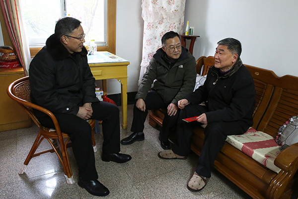 声声问候暖人心,句句祝福现真情。在2016年新春佳节来临之际,校党委书记许继荣、校长闵永新等校领导,先后登门慰问学校困难党员、教师代表、离退休老同志。党办、组织部、宣传部、离退休人员工作处负责同志分别陪同慰问。