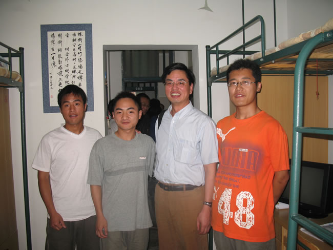 5月11日下午16:30,国评专家王文斌教授在学生宿舍8A楼召开学生座谈会之前,走访了物理与电气工程学院男生宿舍。王教授亲切地询问同学们的学习、生活情况,勉励同学们在良好的学习、生活环境下要刻苦学习、立志成才。走访时,王教授还欣然地接受同学们合影留念的邀请,并且要求同学们日后将照片邮寄给他。(物理与电气工程学院)