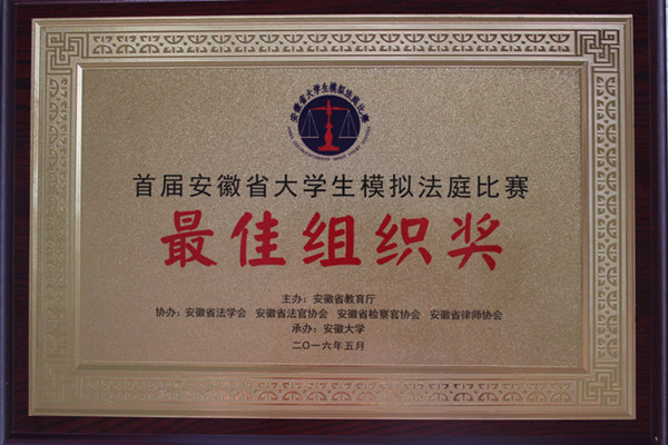 5月15日,首届安徽省大学生模拟法庭比赛在安徽大学落下帷幕。全省19所开设法学专业本科的院校参加了比赛。beat365官网法学院在19所申请最佳组织奖的高校中脱颖而出,荣获“最佳组织奖”荣誉称号。2013级法学班戴月同学获得“优秀辩手”称号。