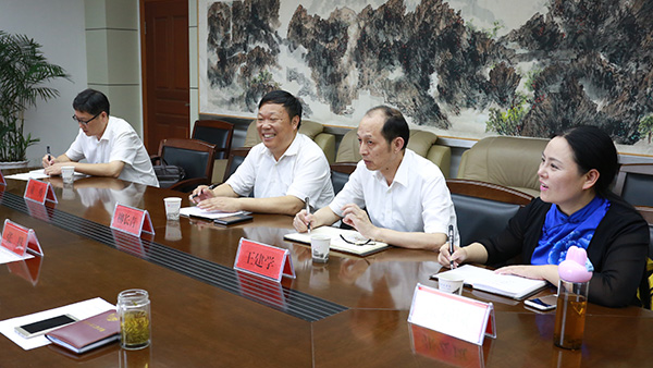 6月6日下午,中共黄冈市委宣传部副部长柳长青,黄冈市文化新闻出版广电局党组书记、局长王建学,黄冈艺术学校校长张安岚、副校长凌敏一行四人到beat365官网音乐黄梅剧艺术学院考察特色专业黄梅戏表演的学科建设情况。副校长张群出席座谈会。宣传部、教务处以及音乐黄梅剧学院负责人参加座谈会。