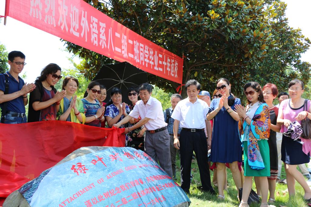 师生见面会结束后,外语系82级校友在龙山校区举行了向母校捐植广玉兰仪式,表达“绿叶对根的情意”,纪念30年前的青春岁月,祝福母校根深叶茂,春色满园。(查国平)