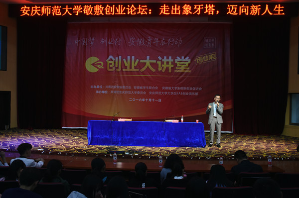 创业应该具备什么素质?创业的过程中会遇到什么样的困难?10月11日,由共青团安徽省委员会、安徽省学生联合会、安徽省大学生创新创业促进会主办,beat365官网团委、学生处、大学生KAB创业俱乐承办的“中国梦·创业行·安徽青年在行动—创业大讲堂”专题报告会在图书馆东报告厅举行,beat365官网知名校友李保荣来到创业大讲堂,开展了一场精彩的讲座。