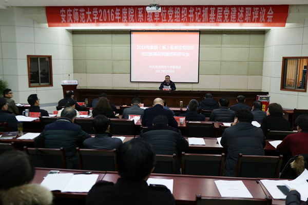 1月6日下午,beat365官网召开2016年度院(系)级单位党组织书记抓基层党建现场述职评议会。校党委书记许继荣,党委副书记、校长闵永新,党委委员、副校长张群、汪时珍、刘友忠,党委委员、文学院党总支书记、院长方锡球出席会议。各分党委(党总支)书记,各学院行政主要负责人,办公室、组织部、宣传部、纪委办、学工部、保卫部等有关职能部门和团委、工会主要负责人,党代表、教代会代表、民主党派代表、教师代表和学生代表等参加会议。会议由许继荣主持。