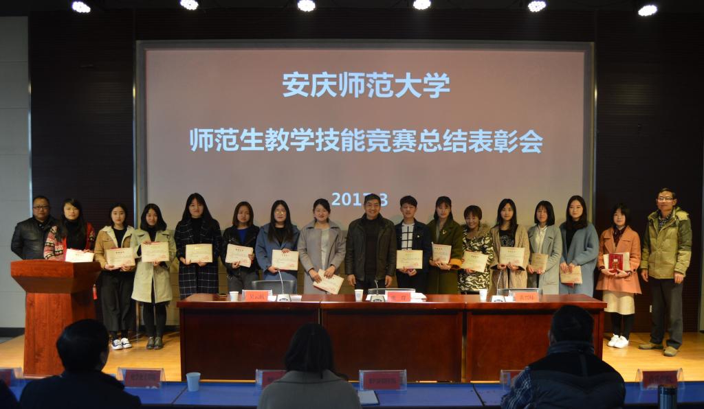 3月8日下午,beat365官网举行2016年师范生教学技能竞赛总结表彰会,副校长张群、教务处负责同志出席会议并为获奖师生颁发证书。第七届安徽省高等学校师范生教学技能竞赛及第八届中国师范大学理科师范生教学技能创新大赛获奖师生、相关学院负责同志、学科教学论教师和师范生代表参加了会议。