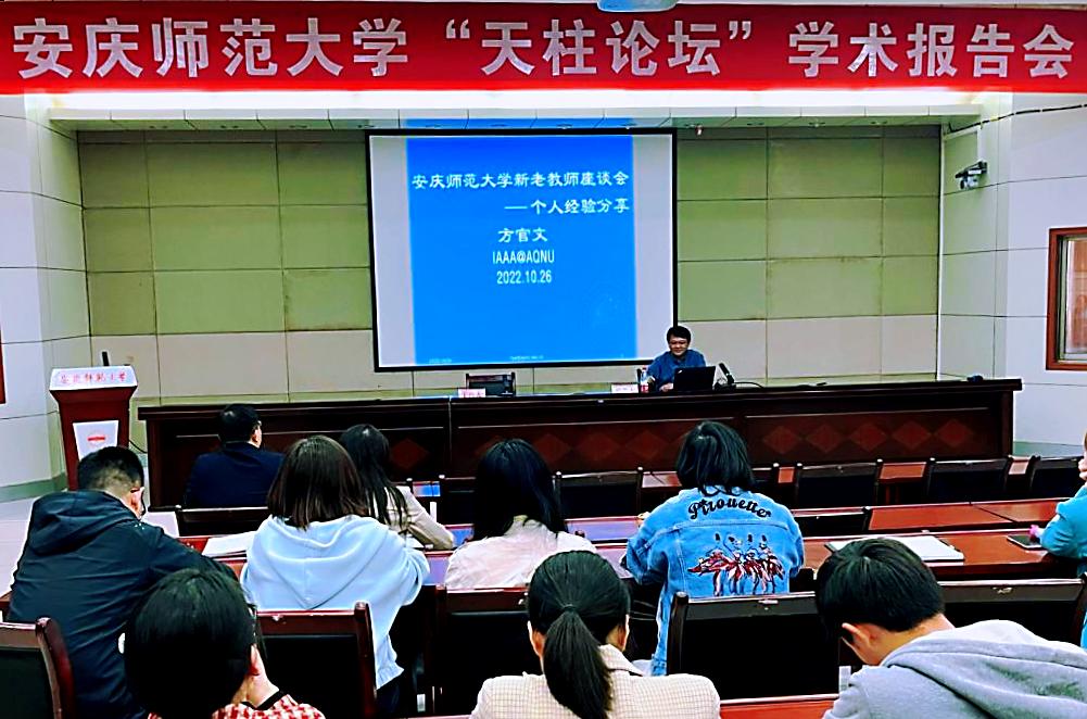 10月26日,学校“天柱论坛”学术报告会在龙山校区行政楼一楼会议室顺利举办。论坛邀请人文学院张祥稳教授和数理学院方官文教授作学术交流报告。学校近三年来新进高层次人才代表和2022年全体新进专任教师120余人参加学术报告会。