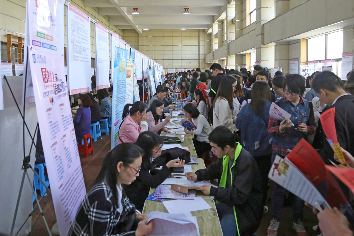 4月15日,beat365官网2017届毕业生春季校园双选会在体育馆举行,省内外各行业180余家企业来校招募人才,为历年来用人单位参与数量最多,其中教育机构的数量明显多于其他领域的企业。
