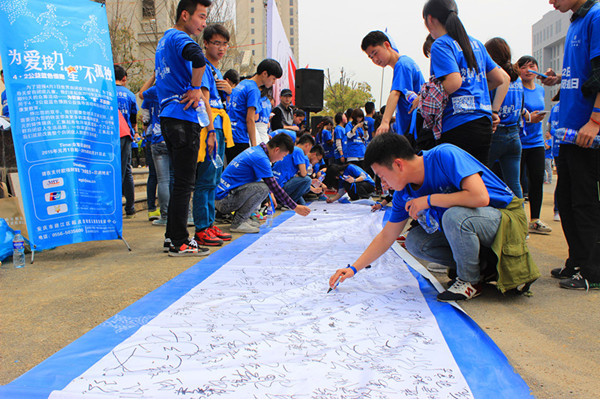负责人甘俊齐说:“青协每周三下午都有志愿者去和自闭症儿童面对面交流,这次马拉松活动因为参与人员多,涉及范围广,对于宣传关爱自闭症有重大意义,本次活动的主题也主要在于宣传。”