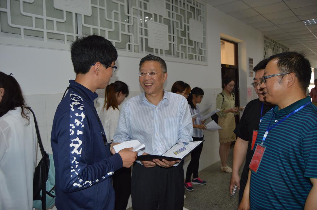校长闵永新、安庆教育体育局副局长钟胜、教育体育纪工委书记芮国平在考试当天巡视了考场。闵永新在考务组负责人的陪同下,通过监控查看了各考场,并到候考室、抽题室、备课室检查了考试的整个流程。他要求考务组和所有纪检员要坚守岗位,按章操作,确保考试公平公正。在考场外,一些参加完面试的考生还向校长介绍了刚才自己在面试中的表现和感受,闵校长给予了热情的鼓励。
